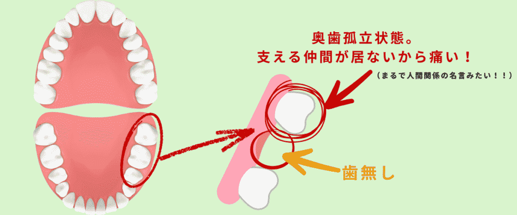 左下にひとつだけ“孤立している奥歯”があるのですが、